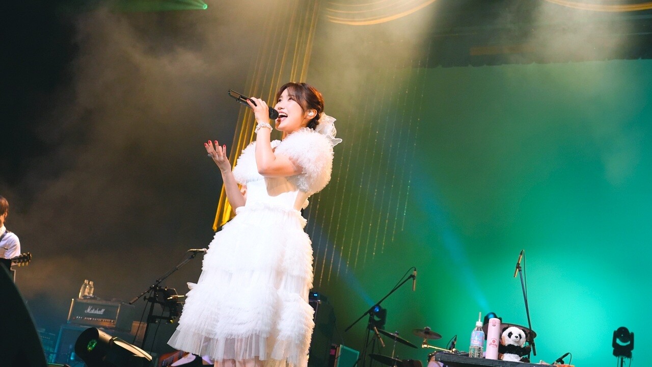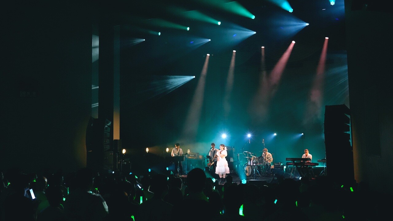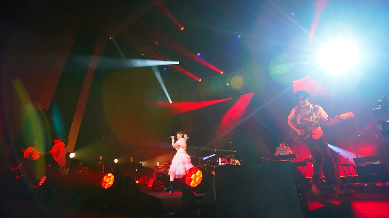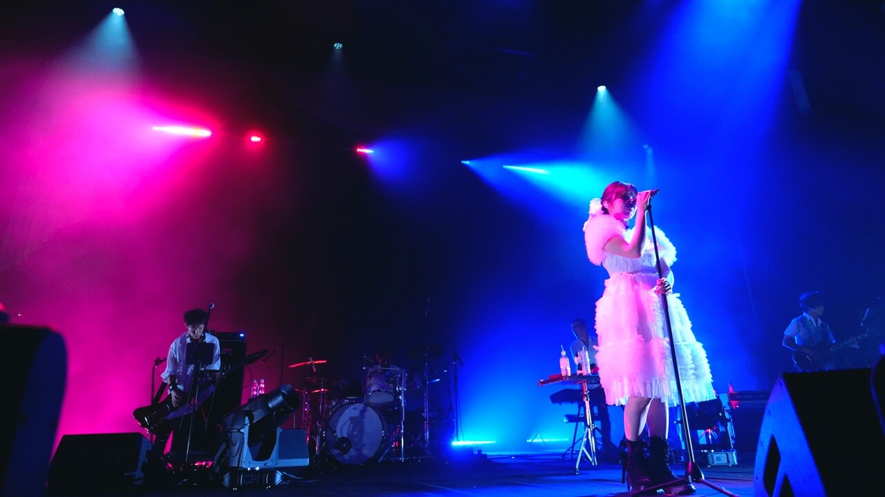 最新アルバム『Re:birthday』収録曲を次々披露! アンコールでこぼれた“いろんな涙”ももはや“ギグ”と称せた熱狂の昼公演に対して、初披露の新曲の多さからか、夜公演は“ショーケース”に近い見せ方に。純白のドレスワンピースに衣装が変わり、披露するは『Re:birthday』リード曲「Minty Smile」から。