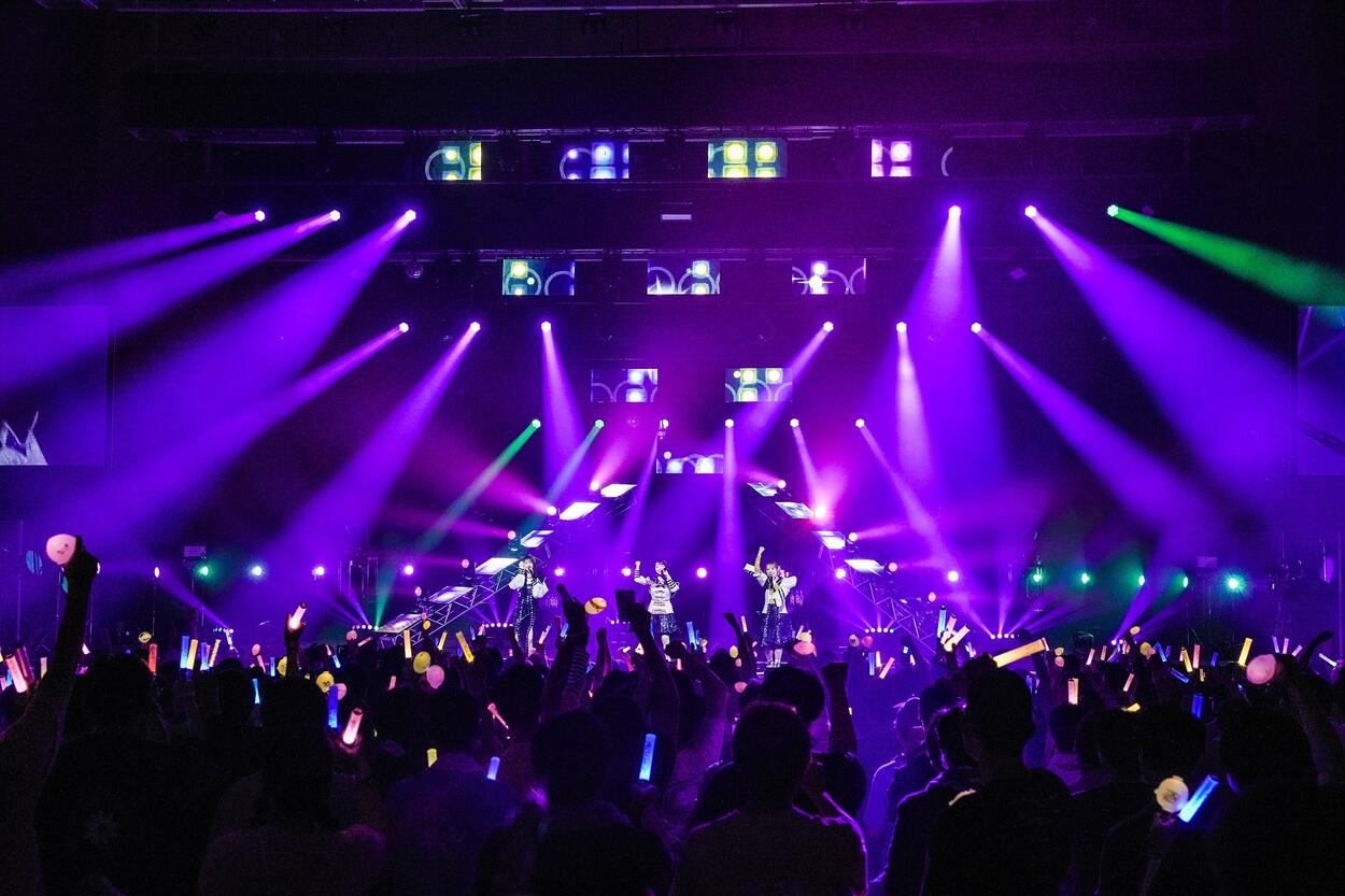 パシフィコ横浜国立大ホールは、TrySailがデビュー時から何度となくステージに立ち、メンバーが“実家”と呼ぶほど縁の深い場所。その3F席までぎっしりと埋まった会場が期待に沸くなか、照明が暗転し、これまでのライブ映像で構成されたオープニングムービーがスクリーンに上映される。最後は今年3月に行われた初の日本武道館公演「LAWSON presents TrySail 10周年出航ライブ“FlagShip” in 日本武道館」より、ライブの締めに麻倉が10周年に向けて“出航”を呼びかけるシーンが流れ、その映像に合わせて会場のファンが一丸となって「出航!」と声を上げると、明るくなったステージにTrySailが登場。1stライブのタイトルにも冠された“始まり”の歌「Sail Out」で晴れやかにライブの幕を開ける。