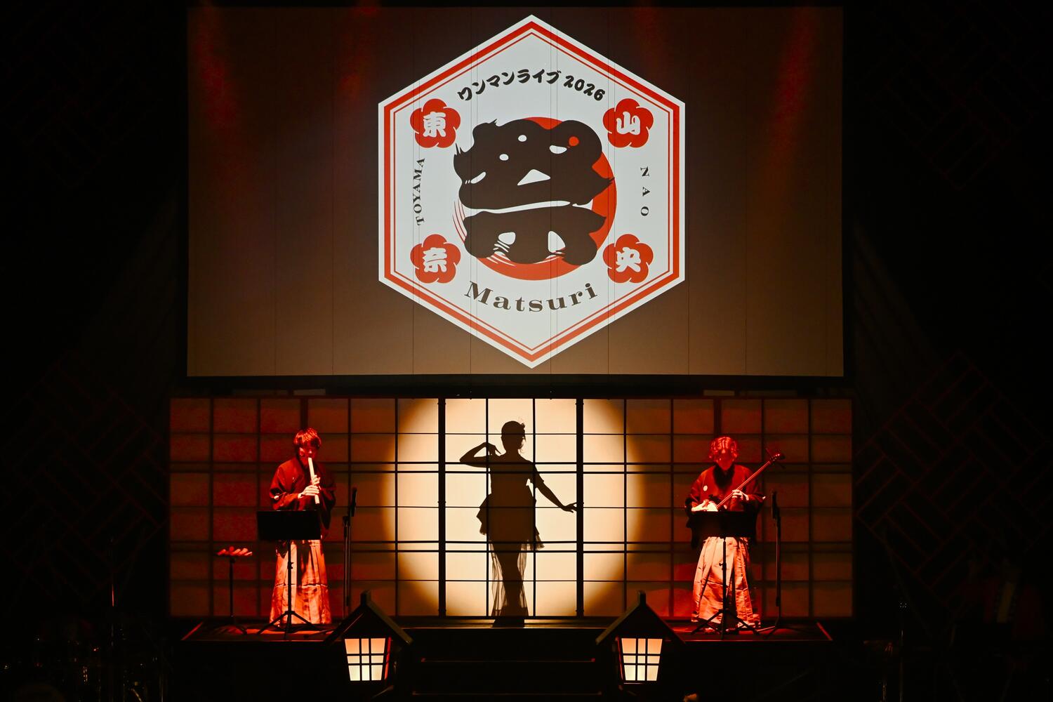 2026年2月8日、J:COMホール八王子で東山奈央ワンマンライブ2026「祭 -Matsuri-」が開催された。当日の朝まで東京では雪が降り積もったが、開場までに雪足は落ち着きを見せた。チケットは1部・2部含めソールドアウト。会場には今回満を持して発売されたライブグッズ「東山奈央推し法被」などに身を包んだお客さんたちが詰めかけ、見渡す限り真っ赤に。世代や性別を問わず人々が集まり、時折手を振って挨拶を交わしている様子は、本物のお祭りのような空気感だ。