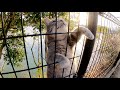 おデブな灰色猫がフェンスを乗り越えて薄茶シロ猫の縄張りに侵入する!