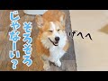 ちょっと早めにご飯の催促をしてみたコーギー犬